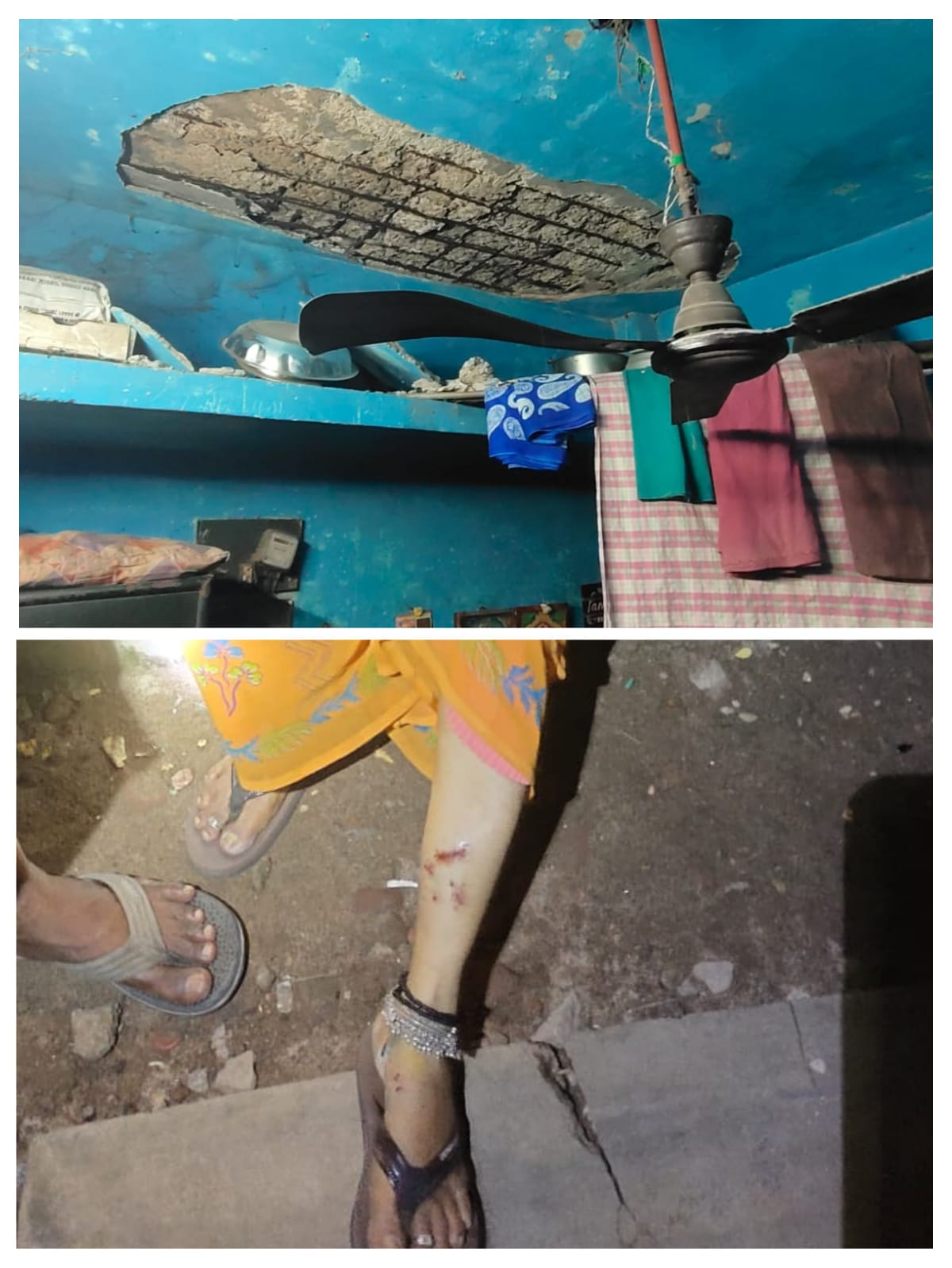 அப்போது திடீரென்று வீட்டின் மேல் சீலிங் இடிந்து சகோதரிகள் மீது விழுந்தது. இதில் முனியம்மாளுக்கு இடது காலிலும், கோவிந்தம்மாளுக்கு வலது காலிலும் பலத்த காயம் ஏற்பட்டது. உடனடியாக அருகில் இருந்தவர் இருவரையும் மீட்டு அருகில் இருந்த தனியார் மருத்துவமனைக்கு சிகிச்சைக்கு அனுப்பினர்.