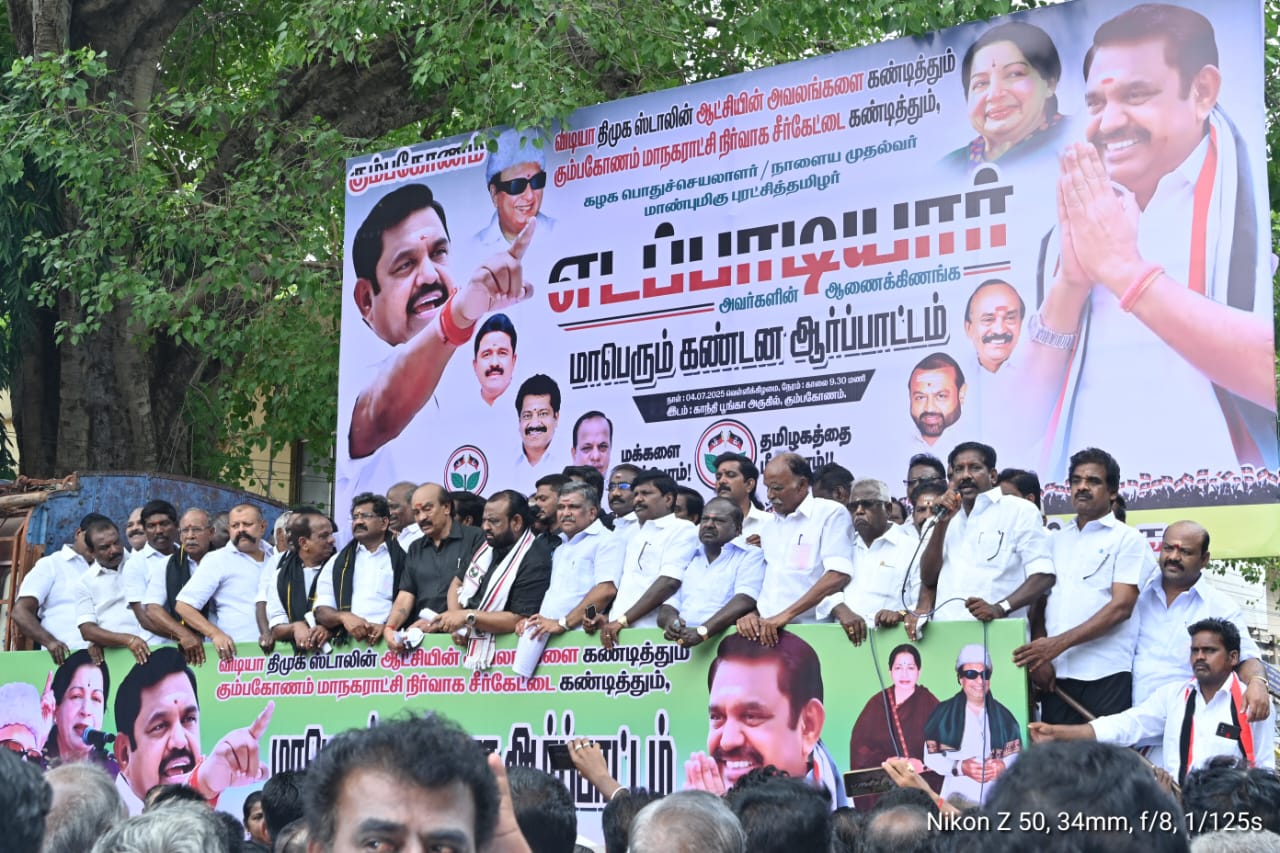 தமிழகத்தில் உள்ள மாநகராட்சிகளின் செயலற்ற நிர்வாகங்களை வேடிக்கை பார்க்கும் திமுக அரசைக் கண்டித்து அ.தி.மு.க.கழக பொதுச்செயலாளரும்,தமிழக எதிர்கட்சித் தலைவர் எடப்பாடியார் அறிவுறுத்தல்படி மக்களின் அடிப்படைத் தேவைகளை நிறைவேற்றாத கும்பகோணம் மாநகராட்சி நிர்வாகத்தைக் கண்டித்து தஞ்சை கிழக்கு மாவட்டக் கழகத்தின் சார்பில் கண்டன ஆர்ப்பாட்டம் கும்பகோணம் காந்தி பூங்கா அருகே நடைப்பெற்றது.