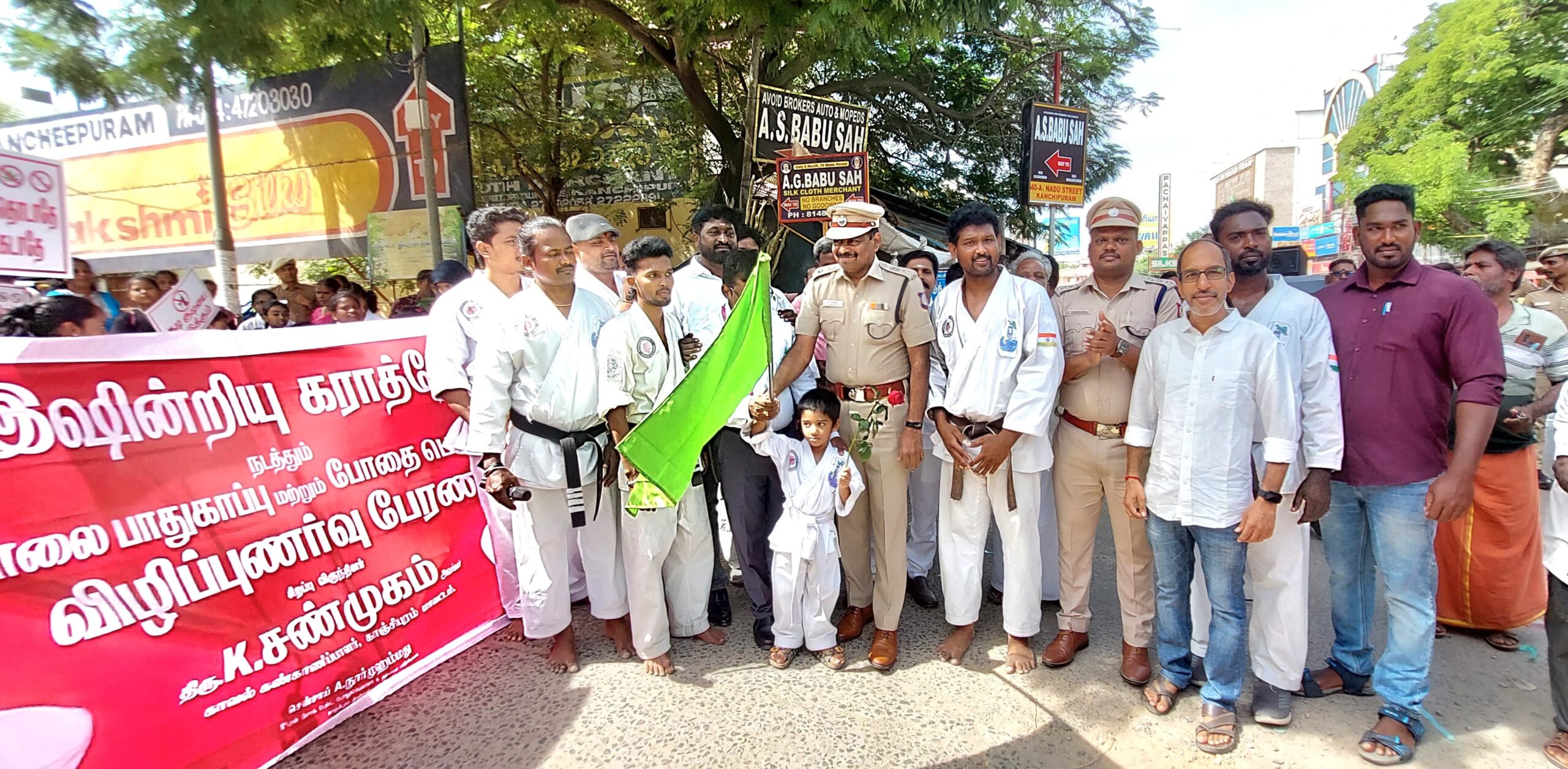 காஞ்சிபுரம் இஷின்ரியூ கராத்தே சார்பில் சாலை பாதுகாப்பு மற்றும் போதைப்பொருள் விழிப்புணர்வு பேரணியானது காஞ்சிபுரம் தாலுக்கா அலுவலகம் எதிரே இஷின்ரியூ கராத்தே மாஸ்டர் நூறுமுகமது ஏற்பாட்டில் இன்று நடைபெற்றது.