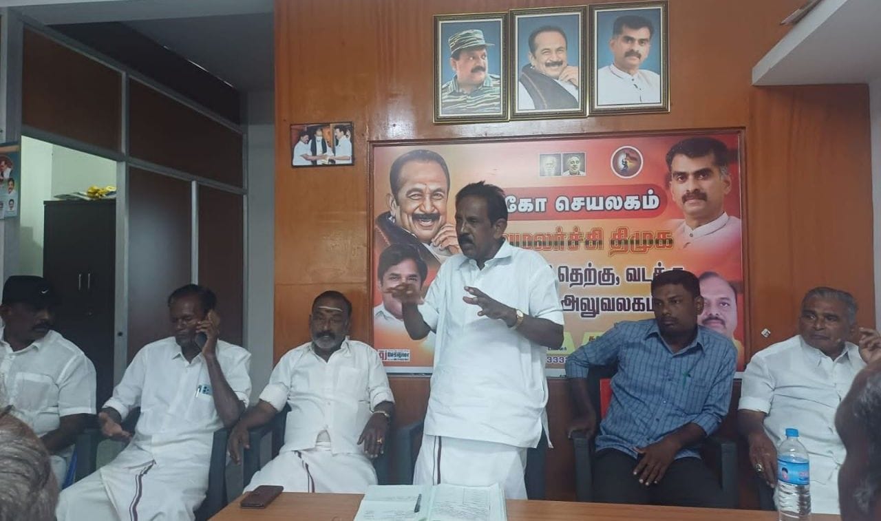 தென்காசி தெற்கு மாவட்ட மதிமுக மாவட்ட நிர்வாகிகள் கூட்டம் மாவட்ட அலுவலகம் வைகோ செயலகத்தில் வைத்து மாவட்ட அவைத்தலைவர் ந.வெங்கடேஷ்வரன் தலைமையில் நடைபெற்றது.