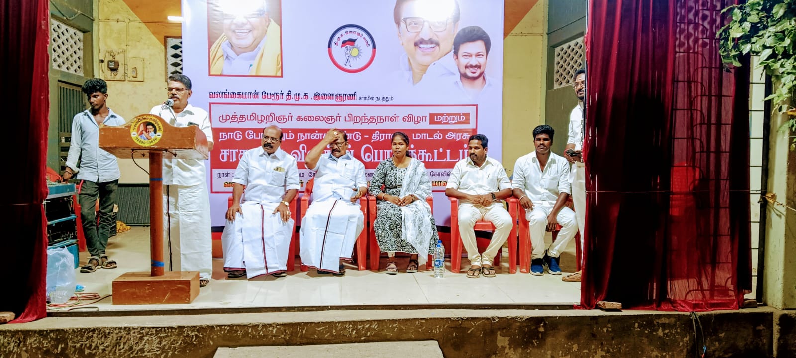 திருவாரூர் மாவட்டம் வலங்கைமான் மகா மாரியம்மன் ஆலயம் எதிரில் உள்ள டாக்டர் கலைஞர் 49- வது பிறந்த நாள் சீரணி கலையரங்கத்தில் பேரூர் திமுக இளைஞர் அணி சார்பில் மண்ணின் மைந்தர், முத்தமிழ் அறிஞர் டாக்டர் கலைஞர் அவர்களின் 102- பிறந்த நாள் விழா, அரசின் நான்காண்டு சாதனை விளக்க தெருமுனை பிரச்சார கூட்டம் நடைபெற்றது.
