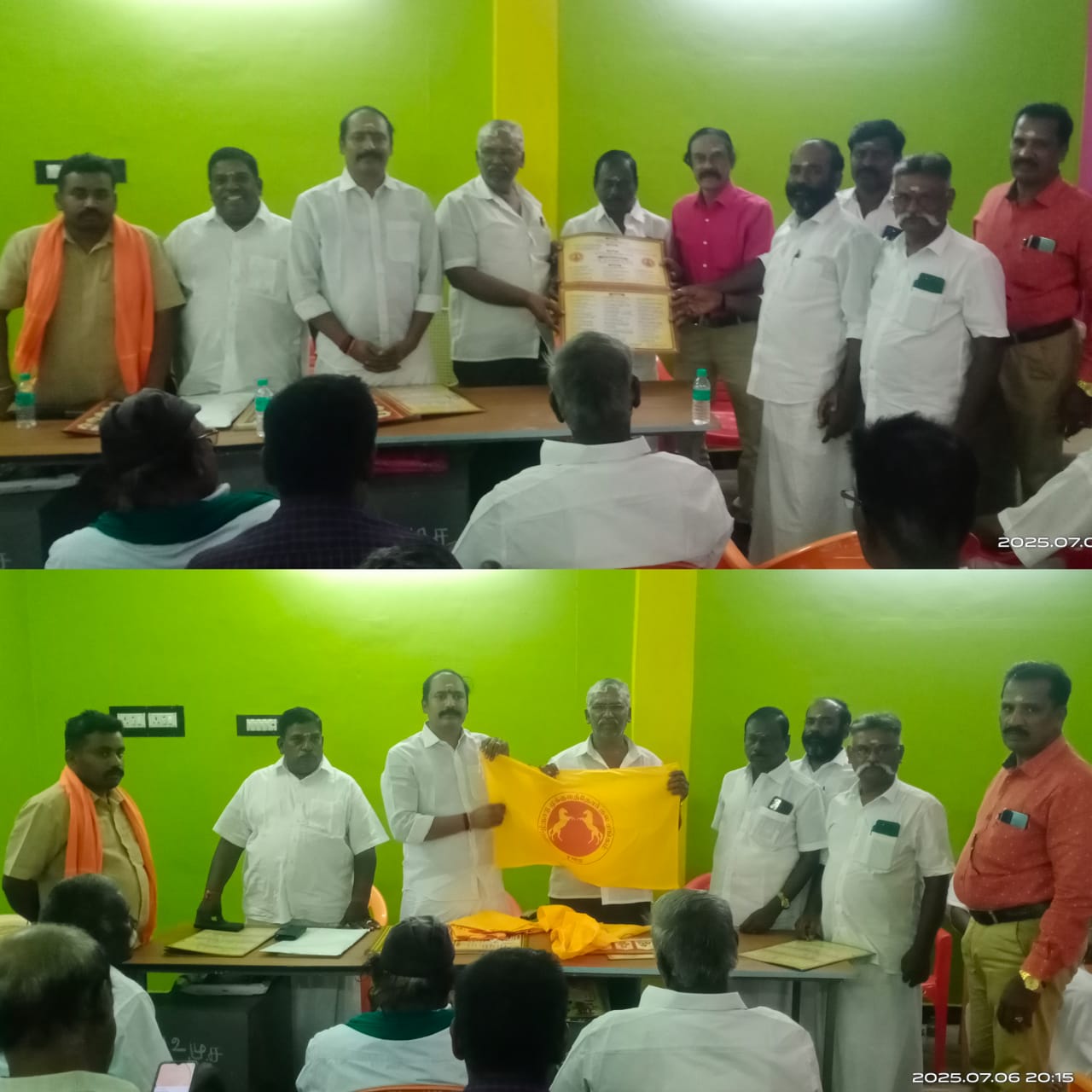 மேலும் கொடிகள் தயாரிக்கப்பட்டு உள்ளது தேவைப்படுவோர் கொடியினை சங்கத்தில் வாங்கிக் கொள்ளலாம் வருகின்ற பரிசளிப்பு விழாவில் புதிய கொடி மண்டபம் அமைந்துள்ள பகுதியில் கட்டப்பட்டு நிகழ்ச்சி நடைபெறும் என்று தெரிவித்தனர். அரசு பணிகளில் ஓய்வு பெற்ற சங்கத்தின் நிர்வாகிகளுக்கு கைத்தறி ஆடை அணிவித்து வாழ்த்து தெரிவிததனர். கூட்டத்தின் முடிவில் பொருளாளர் குமரேசன் நன்றி கூறினார்.