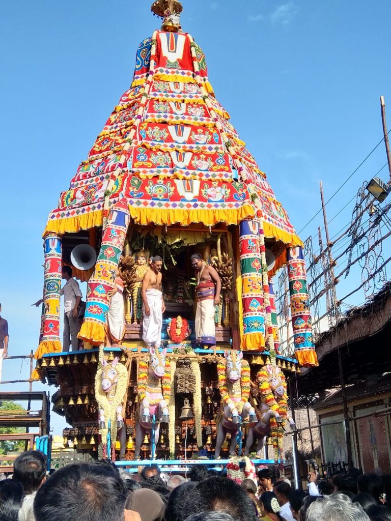 இதனைத் தொடர்ந்து ஒவ்வொரு நாளும் எம்பெருமான் ஒவ்வொரு நாளும் அலங்காரத்தில் பக்தர்களுக்கு காட்சியளித்து அருள் பாலித்தார் இதனைத் தொடர்ந்து இன்று காலை திருத்தேர் வீதி உலா நடைபெற்றது