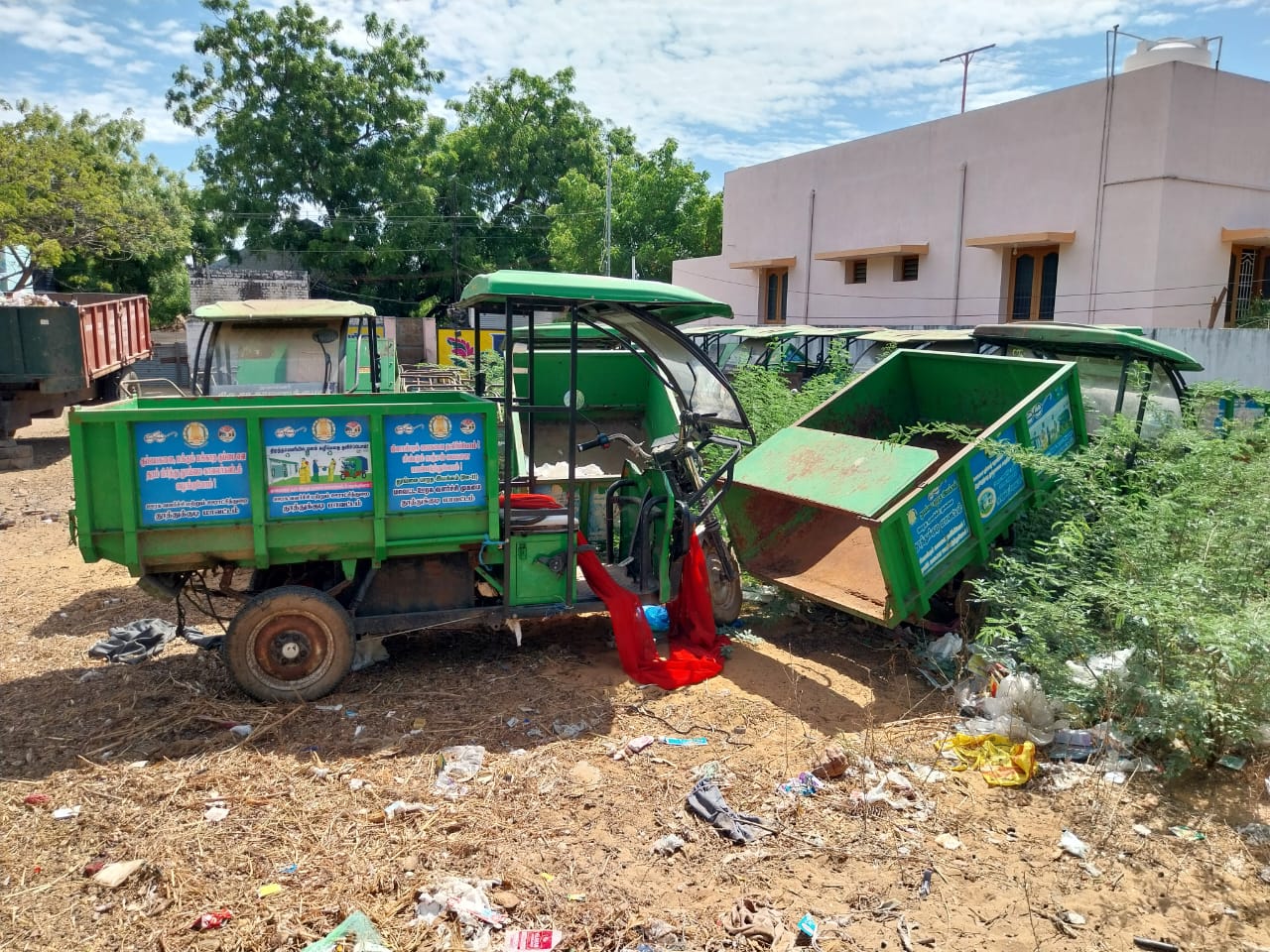 மாப்பிள்ளையூரணி பஞ்சாயத்திற்கு உட்பட்ட பகுதிகளில் குப்பைகள் சேகரிப்பிற்காக அலுவலகங்களில் வாங்கப்பட்ட பேட்டரி வண்டிகள் சரியான முறையில் பராமரிப்பு இல்லாமல் குப்பையில் போடப்பட்ட மாதிரி 20-கும் மேற்பட்ட பேட்டரி வாகனங்கள் பழுதடைந்து பழைய இரும்பு கடைக்கு செல்லும் சூழ்நிலையில் உள்ளது.