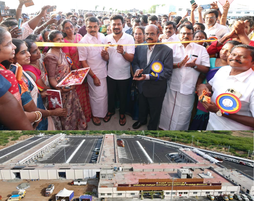 தமிழ்நாடு துணை முதலமைச்சர் உதயநிதி ஸ்டாலின் கரூர் புதிய பேருந்து நிலையம் உள்ளிட்ட 58.25 கோடி ரூபாய் மதிப்பீட்டிலான 13 முடிவுற்ற திட்டப்பணிகளை திறந்து வைத்து , 3.35 கோடி ரூபாய் மதிப்பீட்டிலான 3 புதிய திட்டப்பணிகளுக்கு அடிக்கல் நாட்டி, 18,332 பயனாளிகளுக்கு 162.22 கோடி மதிப்பீட்டிலான நலத்திட்ட உதவிகளை வழங்கினார். தமிழ்நாடு துணை முதலமைச்சர் உதயநிதி ஸ்டாலின் கரூர் திருமாநிலையூரில் ரூ.40.00 கோடி மதிப்பீட்டில் கட்டப்பட்டுள்ள முத்தமிழறிஞர் கலைஞர் மு.கருணாநிதி பேருந்து நிலையத்தை, கரூர் சட்டமன்ற உறுப்பினர் வி.செந்தில்பாலாஜி முன்னிலையில் திறந்து வைத்து பார்வையிட்டார்.