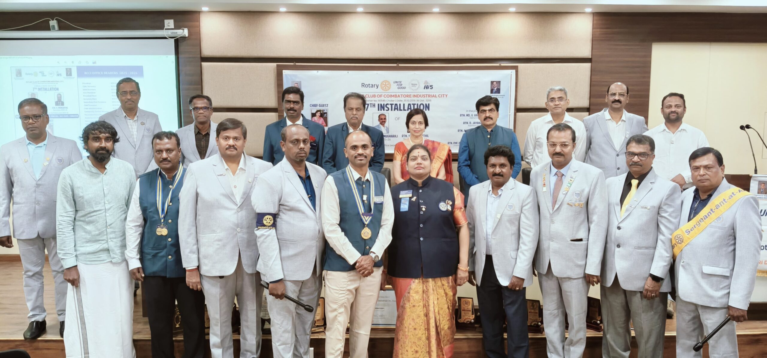 ரோட்டரி கிளப் ஆஃப் கோயம்புத்தூர் இண்டஸ்ட்ரியல் சிட்டி 2025-26 ஆம் ஆண்டிற்கான புதிய நிர்வாகிகள் பதவி ஏற்பு விழா கோவை ரேஸ்கோர்ஸ் சீமா அரங்கில் நடைபெற்றது..