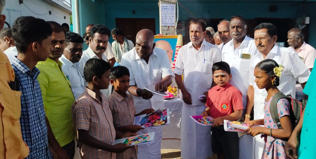 இந்த விழாவில் பள்ளி மாணவ மாணவிகளுக்கு இலவச நோட்டு புத்தகங்களை வழங்கி சிறப்பித்தனர் இதில் ஏராளமான கிராம மக்கள் கலந்து கொண்டனர் .