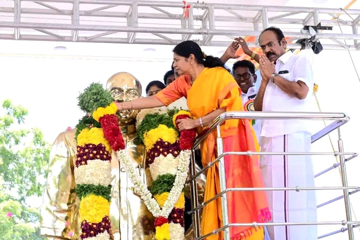 கல்லூரணியில் காமராஜர்சிலையை பாராளமன்ற உறுப்பினர் கனிமொழி திறந்துவைத்தார் விருதுநகர் மாவட்டம், திருச்சுழி தொகுதிக்குட்பட்ட கல்லூரணி கிராமத்திலுள்ள எஸ்.பி.கே. மேல்நிலைப் பள்ளியில், கல்வியே சமுதாயத்தின் விடுதலை எனும் முழக்கத்தினை முன்வைத்து, அனைவரும் கல்வி கற்பதற்கான வலுவான அடித்தளத்தை அமைத்த “கல்விக்கண் திறந்த பெருந்தலைவர் காமராஜர்” அவர்களின் முழு உருவ வெண்கலச்சிலையை பிறந்தநாளான்று தினத்தில் திமுக நாடாளுமன்ற குழுத் தலைவர் . கனிமொழி கருணாநிதி திறந்து வைத்தார். தமிழகநிதியமைச்சர் தங்கம்தென்னரசு தலைமைவகித்தார்