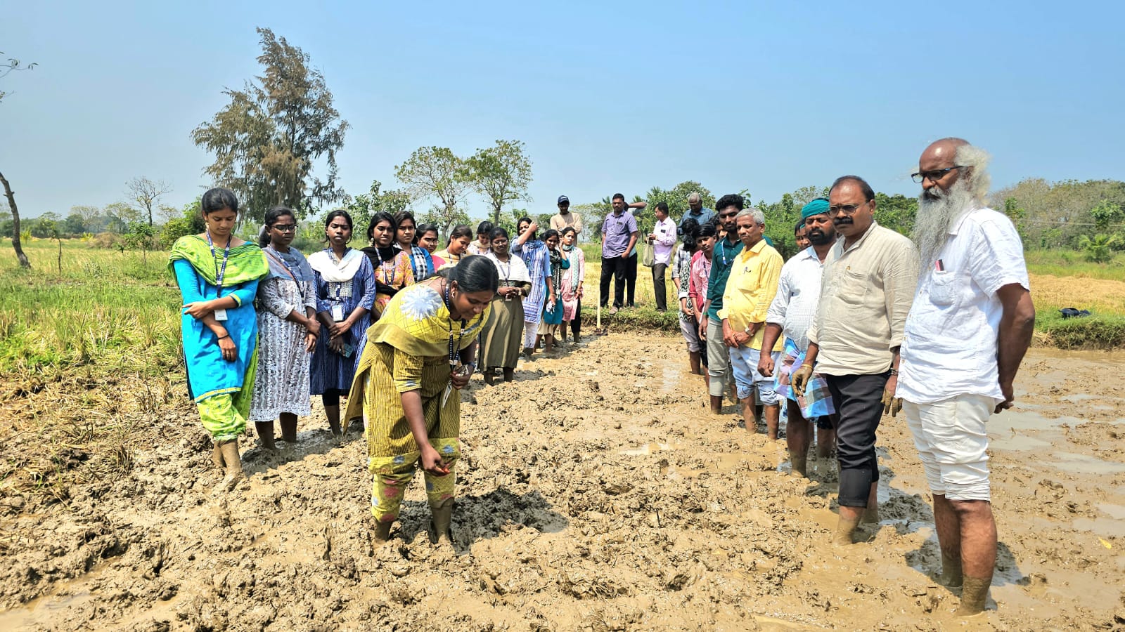 புதுச்சேரி யூனியன் பிரதேசம், காரைக்கால் மாவட்டம், வடக்கு வரிச்சிக்குடி கிராமத்தில் இயற்கை விவசாயி திரு. பாஸ்கர் அவர்களின் வயலில் பாரம்பரிய பழஞ்சேர் மற்றும் பிரத்தியேக நீர் மேலாண்மை தொழில்நுட்பங்கள் குறித்து, பண்டித ஜவஹர்லால் நேரு வேளாண் கல்லூரி மற்றும் ஆராய்ச்சி நிலையத்தின் இணைப் பேராசிரியர் முனைவர் ஆனந்த்குமார் அவர்களின் ஒருங்கிணைப்பில், 28 மாணவர்–மாணவியர் மற்றும் முன்னோடி விவசாயிகளின் பங்கேற்புடன் நிகழ் ஆய்வு நடைபெற்றது.