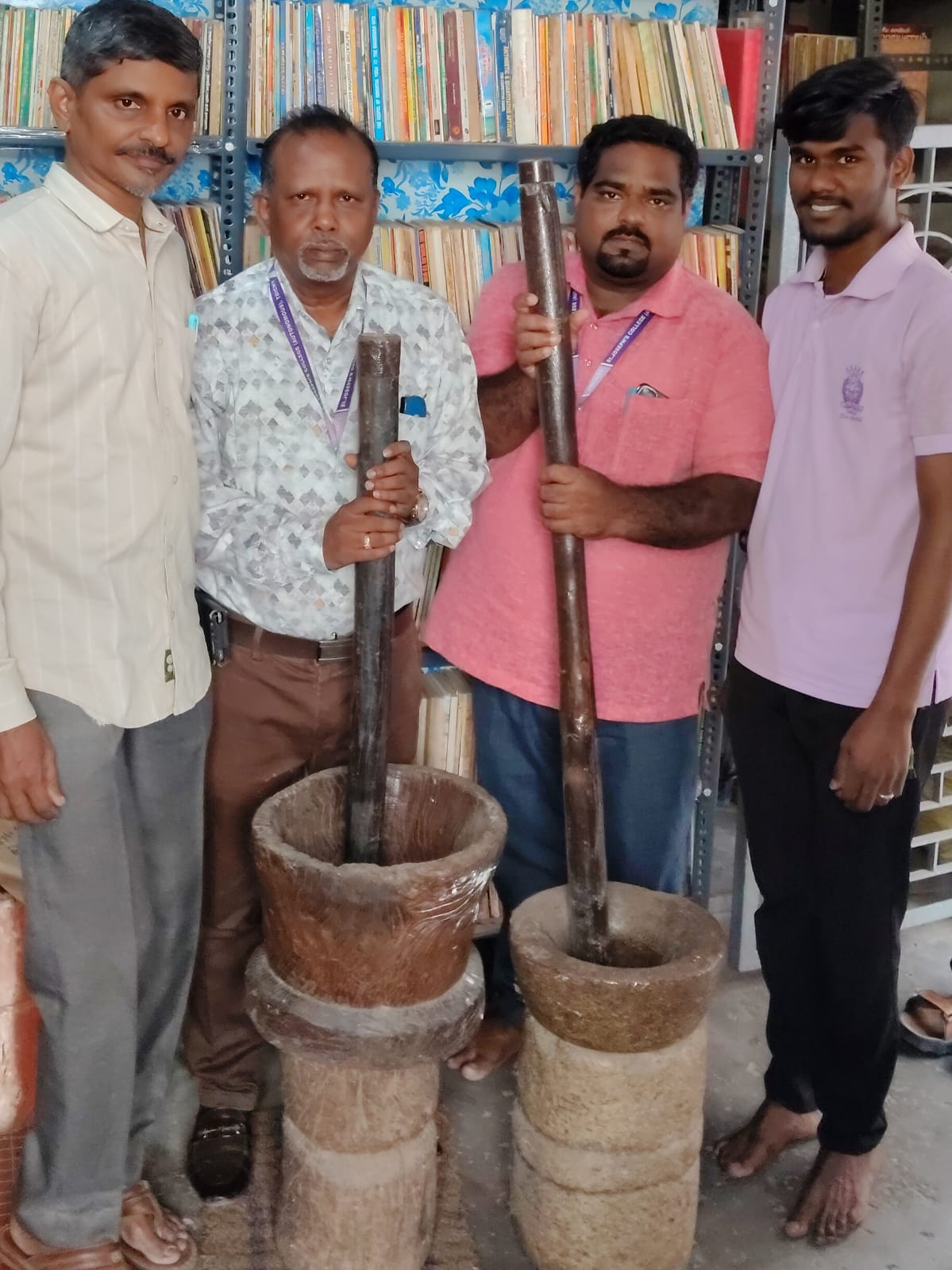 உள்ளிட்டோர் பார்வையிட்டு உரல் உலக்கை குந்தாணி குறித்து கேட்டறிந்தனர்.