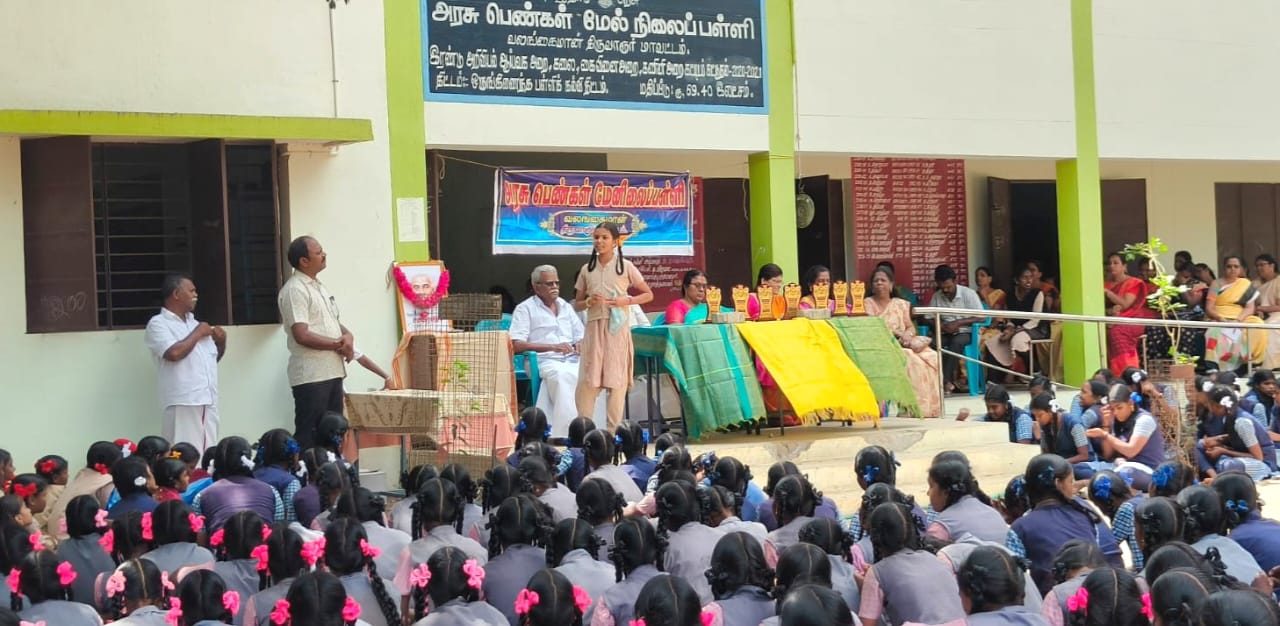 பத்தாம் வகுப்பில் முதலிடம் பெற்ற மாணவி பிரதீபா, இரண்டாம் இடம் பெற்ற மாணவி ஜனனி, மூன்றாம் இடம் பெற்ற மாணவி தேவதர்ஷினி, 12- ஆம் வகுப்பில் முதல் இடம் பெற்ற மாணவி கலைச்செல்வி, இரண்டாம் இடம் பெற்ற மாணவி வைஷ்ணவி, மூன்றாம் இடம் பெற்ற மாணவி காவியா ஆகியோருக்கு மாணவிகளுக்கு ஒய்வு பெற்ற ஆசிரியர் புரவலர் சம்பந்தம் அன்பளிப்பாக கேடயம் மற்றும் பணப்பரிசுகளை வழங்கினார்.