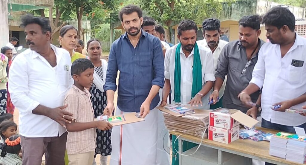 தமிழக வெற்றி கழகம் சார்பில் பள்ளி மாணவ மாணவிகளுக்கு கல்வி உபகரணங்கள்,