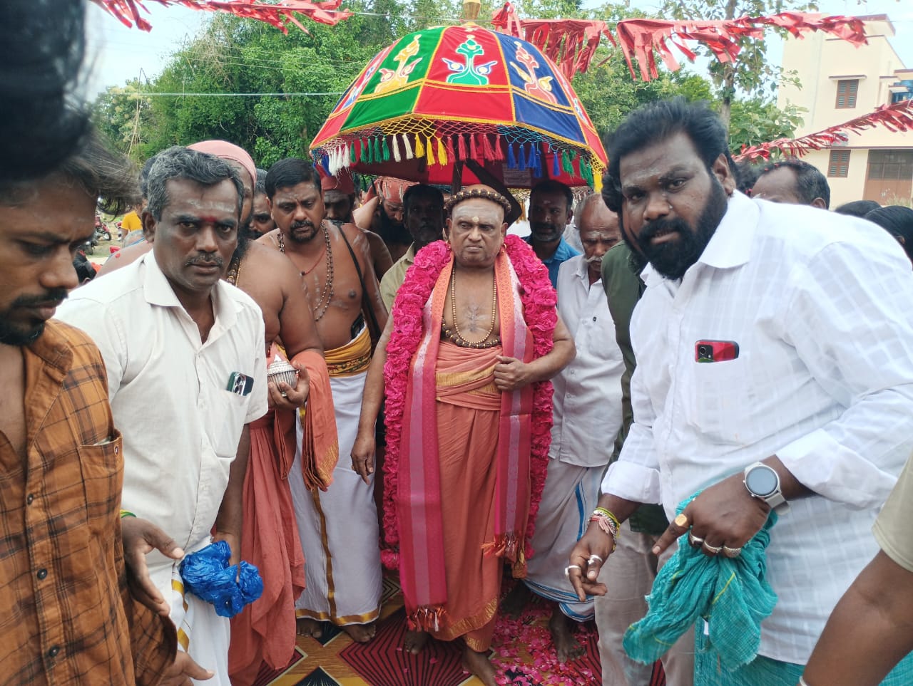 பந்தநல்லூர் அருகே காகிதப்பட்டறை கிராமத்தில் விநாயகர் ஆலய மண்டல பூஜை நிறைவு விழாவில் திருவாவடுதுறை ஆதீனம் அம்பலவாண தேசிக பரமாச்சாரி சுவாமிகள் கலந்துகொண்டு பக்தர்களுக்கு அருள் ஆசி வழங்கினார்.