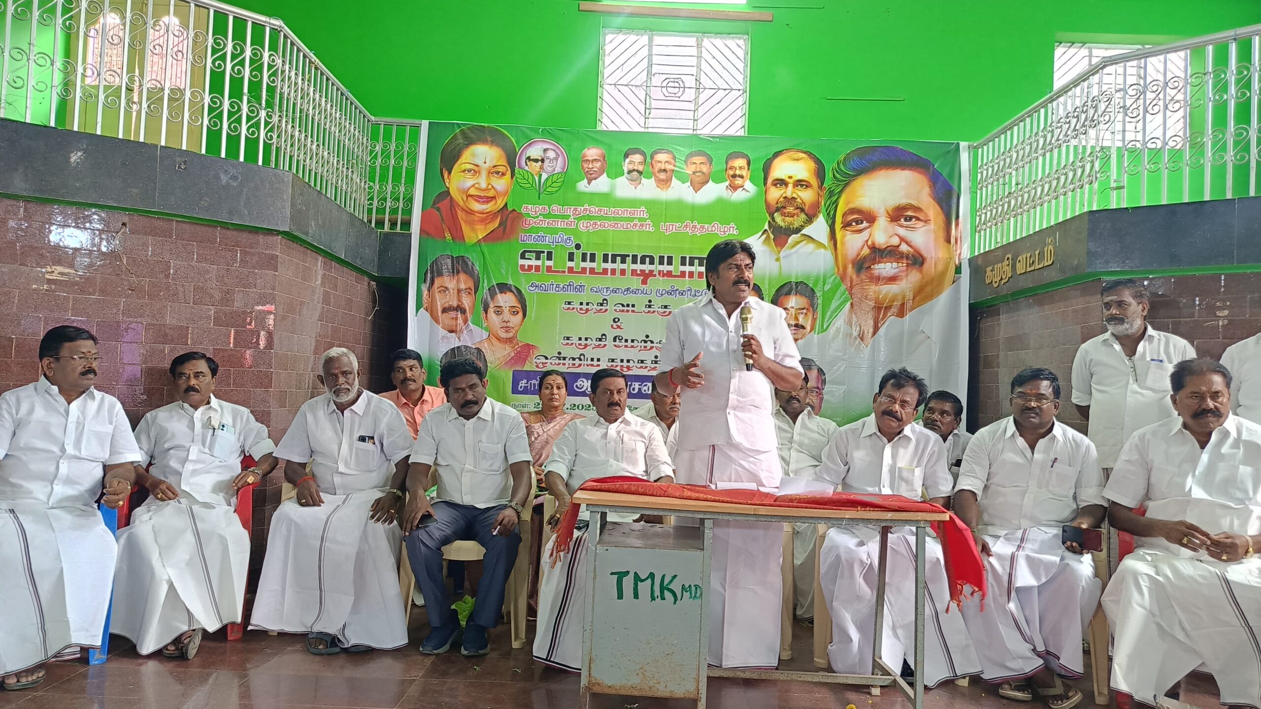 இது குறித்து கமுதி தனியார் திருமண மஹாலில் நேற்று நடைபெற்ற கூட்டத்திற்கு மாவட்ட கழக செயலாளர் முனியசாமி தலைமை தாங்கினார். கமுதி அதிமுக மேற்கு ஒன்றிய கழகச் செயலாளர் கருமலையான், வடக்கு ஒன்றிய கழகச் செயலாளர் ராஜேந்திரன் முன்னாள் சட்டமன்ற உறுப்பினர் முத்தையா, ஒன்றிய அவைத் தலைவர் சேகரன் ஆகியோர் முன்னிலை வைத்தனர்