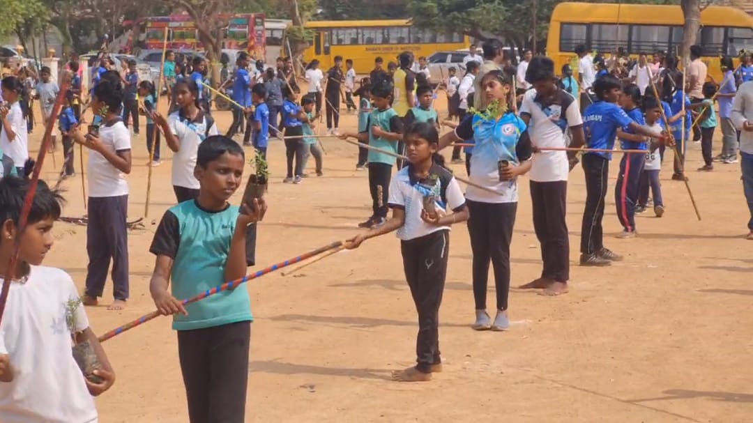 தஞ்சாவூரில் மரம் வளர்ப்போம் பூமியை காப்பாற்றுவோம் என்ற உறுதி மொழியுடன் 300க்கும் மேற்பட்ட சிலம்ப வீரர்கள் மற்றும் கராத்தே வீரர்கள் இணைந்து பல்வேறு மரக்கன்றுகளை தங்களது ஒரு கைகளில் வைத்துக்கொண்டு தொடர்ந்து 33 நிமிடம் சிலம்பம் சுற்றியும், கராத்தே செய்தும் சாதனை முயற்சியில் ஈடுபட்டனர், வீட்டுக்கு ஒரு மரக்கன்று வளர்ப்போம், இயற்கையை பாதுகாப்போம் என்ற விழிப்புணர்வுக்காக நடத்தப்பட்ட இந்த சாதனை நிகழ்ச்சியில் பெற்றோர்களும் விளையாட்டு வீரர்களும் ஏராளமானோர் கலந்து கொண்டனர்