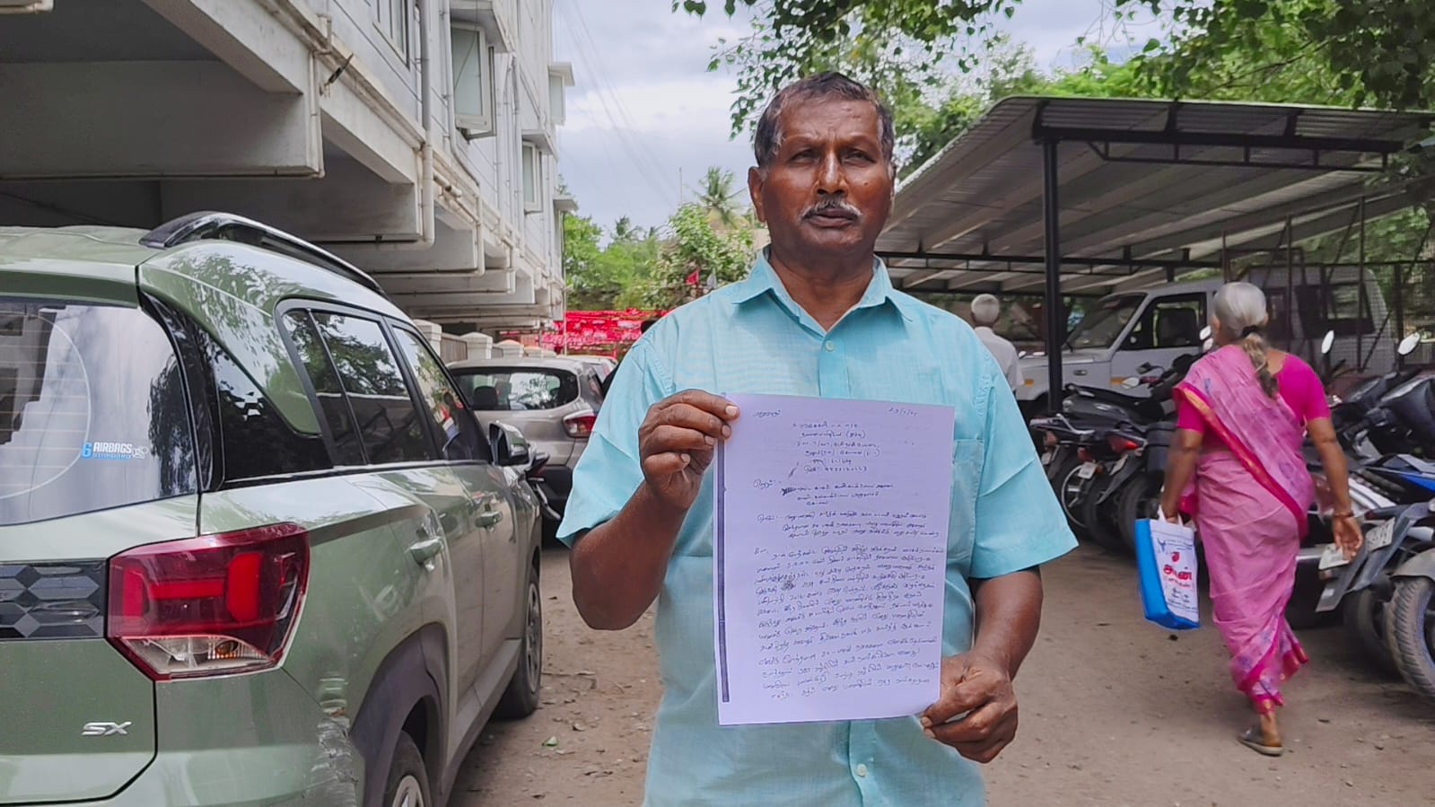 கோவை சுல்தான்பேட்டையை சேர்ந்த ஓய்வு பெற்ற தலைமை ஆசிரியர் முருகேசன். இவரது மனைவி சாந்தினி சமீபத்தில் உயிரிழந்துள்ளார். இந்நிலையில் கோவை மாவட்ட காவல் கண்காணிப்பாளர் அலுவலகத்தில் மனு ஒன்றை அளித்துள்ளார்.