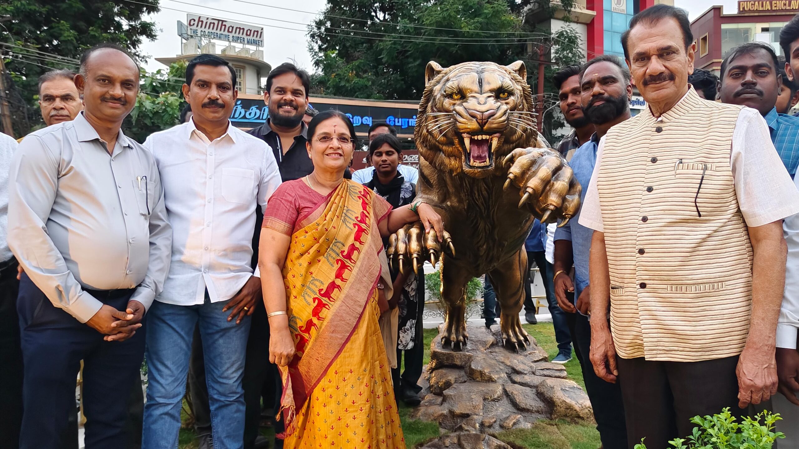மேட்டுப்பாளையம் சாலை வடகோவை சிந்தாமணி சந்திப்பில் கோவை மாநகராட்சியின் சார்பாக அமைக்கப்பட்ட இந்தியாவின் தேசிய விலங்கான புலி உருவ சிலை திறப்பு விழா நடைபெற்றது..