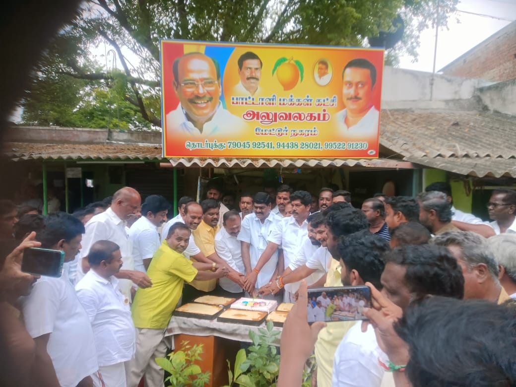 சேலம் மாவட்டம் மேட்டூரில் பாமக நிறுவனர் டாக்டர் ராமதாஸ் அவர்களின் 87 ஆவது பிறந்தநாள் விழா கேக் வெட்டி கொண்டாடப்பட்டது