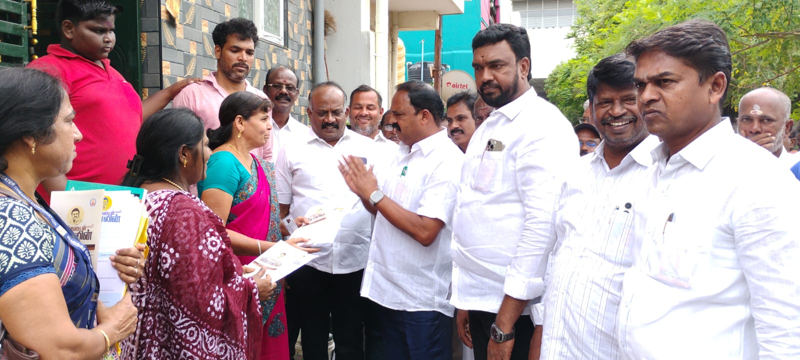 திருவொற்றியூர் சட்டமன்ற உறுப்பினர் கே .பி சங்கர் பகுதிச் செயலாளர் , வை மா அருள்தாசன் , முன்னாள் மாமன்ற உறுப்பினர் சொக்கலிங்கம். லயன் சங்கர். ஆகியோர் பார்வையிட்டு பொது மக்களிடம் படிவங்களை வழங்கி அவர்களது குறைகளை கேட்டு அறிந்து தேவையான உதவிகளை உடனடியாக செய்து கொடுக்க அனைத்து துறை அதிகாரிகள் மூலம் முகாம் அமைக்கப்பட உள்ளதாகவும் கலைஞர் உரிமைத் தொகை , ஜாதி சான்றிதழ் , ஆதார் கார்டு ரேஷன் கார்டில் பெயர் நீக்குதல் பெயர் சேர்த்தல் உள்ளிட்ட சான்றிதழ்களை உடனடியாக பொதுமக்களுக்கு வழங்க உள்ளதாகவும் தேவையானவர்கள் வந்து பயனடையும் படி வீடு வீடாக சென்று படிவத்தை வழங்கினர்.