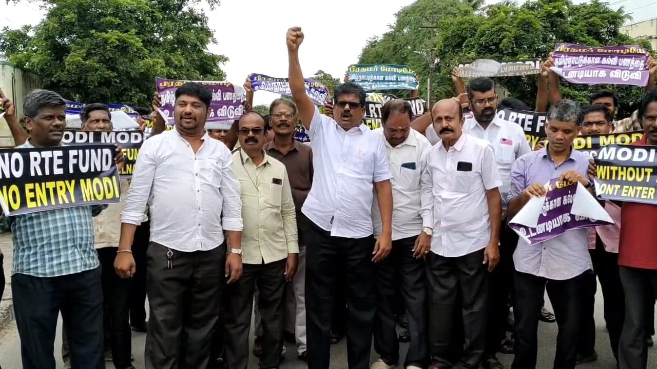 கல்வி நிதி தராமல் இருப்பது அயோக்கியத்தனம் என்றும் பிரதமர் மோடி தமிழ்நாட்டிற்கு நுழைவது தமிழ்நாட்டிற்கு அவமானம் என்றும் தெரிவித்தார். அனைத்து கட்சியினர்களையும் குழந்தைகளுக்காக பேச வைப்பது தான் எங்கள் வேலை என்றும் இது சம்பந்தமாக பல்வேறு கட்சியினரும் அறிக்கை வெளியிட்டதை குறிபிட்ட அவர் அனைத்து கட்சியினரும் சாலையில் இறங்கி போராட வேண்டும் என கேட்டுக்கொண்டார்.