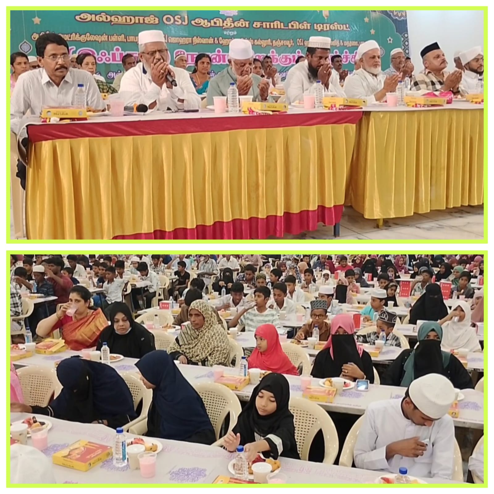 தஞ்சாவூர் மாவட்டம், பாபநாசத்தில் அமைந்துள்ள ஆபுதீன் மெட்ரிகுலேஷன் பள்ளியின் சார்பில் தனியார் திருமண மண்டபத்தில் நோன்பு திறக்கும் நிகழ்ச்சி ஏற்பாடு செய்யப்பட்டு இருந்தது. இதில் உலக அமைதி மற்றும் ஒற்றுமைக்காக சிறப்பு பிரார்த்தனைகள் செய்யப்பட்டது.