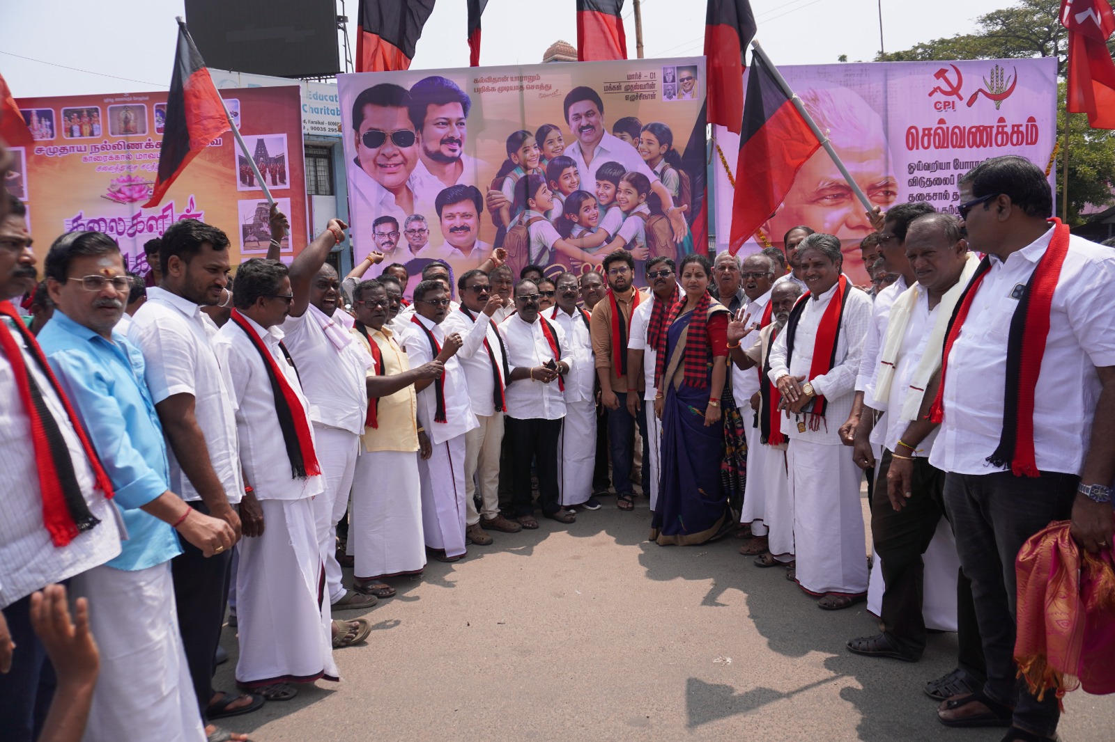 காரைக்கால் மாநில திமுக சார்பில் நமது மாநில கழக அமைப்பாளர் நாஜிம், MLA அவர்கள் வழிகாட்டுதலின்படி கழகத் தலைவர் தமிழ்நாடு முதலமைச்சர் தளபதியார் அவர்களின் 73-வது பிறந்தநாளை முன்னிட்டு காரைக்கால் காமராஜர் பேருந்து நிலையத்தில் பொது மக்களுக்கு இனிப்புகள் வழங்கியும், 100க்கும் மேற்பட்டவர்களுக்கு நலத்திட்ட உதவிகள் வழங்கினார்கள்… அதனைத் தொடர்ந்து சப்தஸ்வரம் முதியோர் இல்லத்தில் மதிய உணவு வழங்கப்பட்டது… இந்த நிகழ்வில் மாநில நிர்வாகிகள், தொகுதி செயலாளர்கள், பொதுக்குழு உறுப்பினர்கள், அனைத்து அணியை சேர்ந்த அமைப்பாளர்கள் துணை அமைப்பாளர்கள் கலந்து கொண்டு சிறப்பித்தார்கள்..!