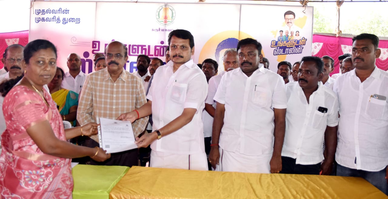 கரூர் சட்டமன்ற உறுப்பினர் வி. செந்தில்பாலாஜி கரூர் வட்டம், ஆத்தூர் பூலாம்பாளையம் சமுதாயக் கூடம், கரூர் மாநகராட்சி, பசுபதிபாளையம் தனியார் திருமண மண்டபம் மற்றும் பஞ்சமாதேவி நவஜீவன் பள்ளி ஆகிய பகுதிகளில் நடைபெற்ற “உங்களுடன் ஸ்டாலின்” திட்ட முகாம்களில் மாவட்ட ஆட்சியர் மீ. தங்கவேல் இ.ஆ.ப., தலைமையில் 45 பயனாளிகளுக்கு ரூ. 44.71 இலட்சம் மதிப்பீட்டில் நலத்திட்ட உதவிகளை வழங்கினார்.