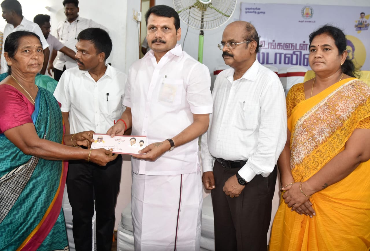 கரூர் சட்டமன்ற உறுப்பினர் வி. செந்தில்பாலாஜி“உங்களுடன் ஸ்டாலின்” திட்ட முகாமில் 18 பயனாளிகளுக்கு ரூ. 6.20 இலட்சம் மதிப்பீட்டில் நலத்திட்ட உதவிகளை வழங்கினார்.