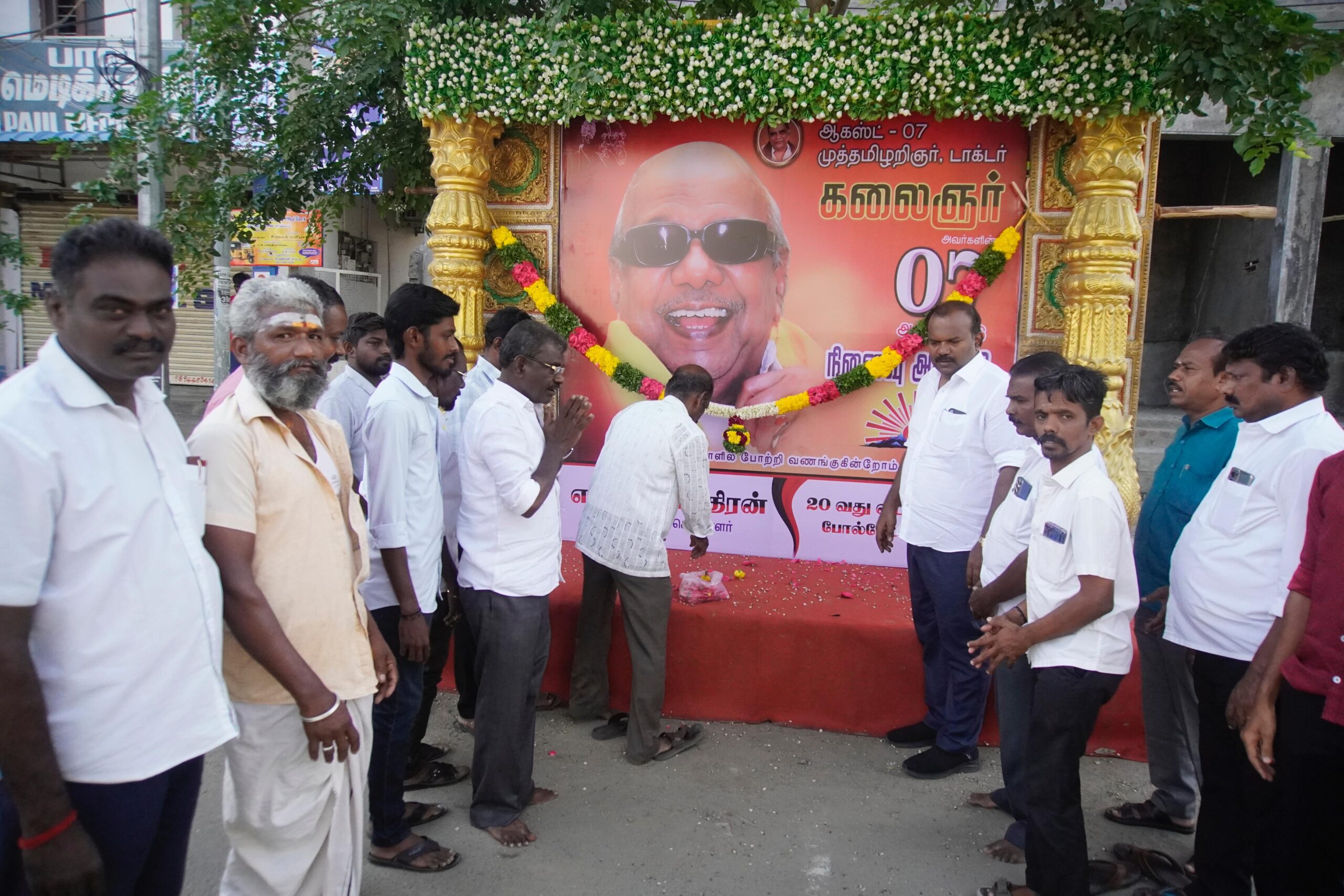 தூத்துக்குடியில் கலைஞா் நினைவு நாளை யொட்டி அவரது படத்திற்கு மேயர் ஜெகன் பொியசாமி மலா் தூவி மாியாதை செய்தாா்.