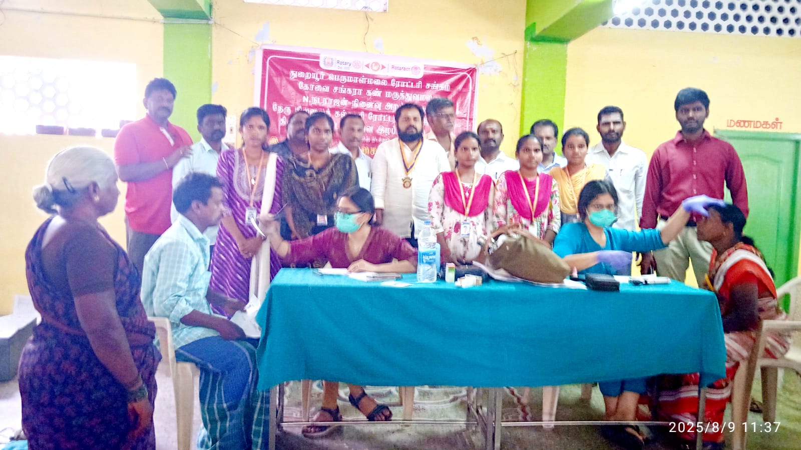 திருச்சி மாவட்டம் துறையூர் கௌரி மஹாலில் 09/08/2025 அன்று துறையூர் பெருமாள்மலை ரோட்டரி சங்கம், கோவை சங்கரா கண் மருத்துவமனை,என்.நடராஜன் நினைவு அறக்கட்டளை மற்றும் புத்தனாம்பட்டி நேரு நினைவுக் கல்லூரி ரோட்டராக்ட் சங்கம், திருச்சி மாவட்ட பார்வையிழப்பு தடுப்பு சங்கம் சார்பில் சங்கத் தலைவர் ஜி.சேதுபதி தலைமையில் மாபெரும் இலவச கண் சிகிச்சை மருத்துவ முகாம் நடைபெற்றது.