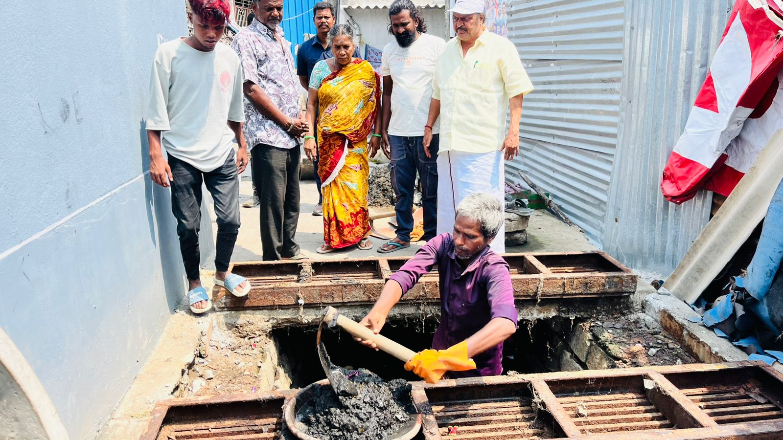 அப்போது கிளைச் செயலாளர் காலப்பன், ராகேஷ் மற்றும் கழக நிர்வாகிகள் சரஸ்வதி, டேவிட் ஆகியோர் உடனிருந்தனர். பணியாளர்கள் வாய்க்காலை தூர்வாரி சுத்தம் செய்யும் பணியில் ஈடுபட்டனர்.