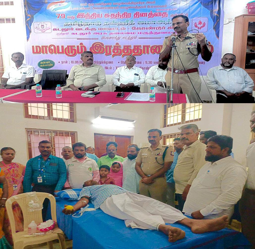 79 வது இந்திய சுதந்திர தினத்தை முன்னிட்டு தமிழ்நாடு தவ்ஹீத் ஜமாத் சார்பில் மாபெரும் ரத்ததான முகாம்..