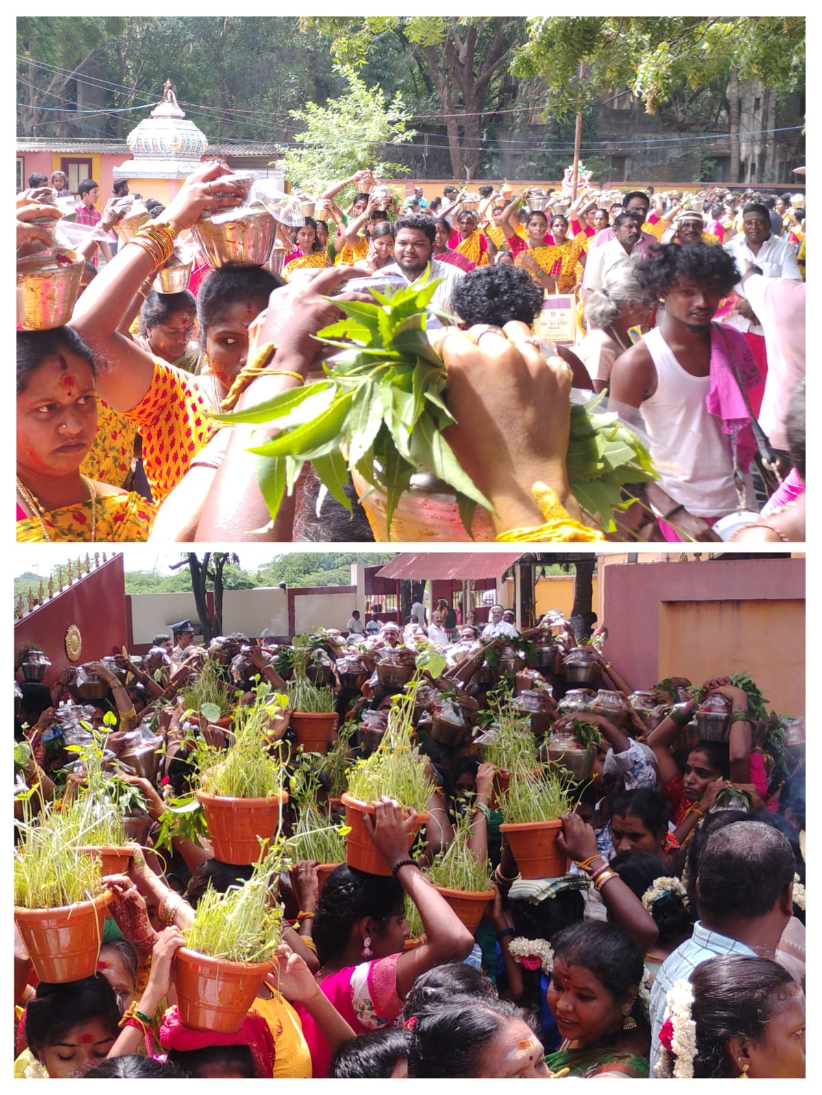500 பெண்கள் பால்குடம் எடுத்து அலகு குத்தியும் தீச்சட்டி எந்தியும் நேர்த்திக்கடன்