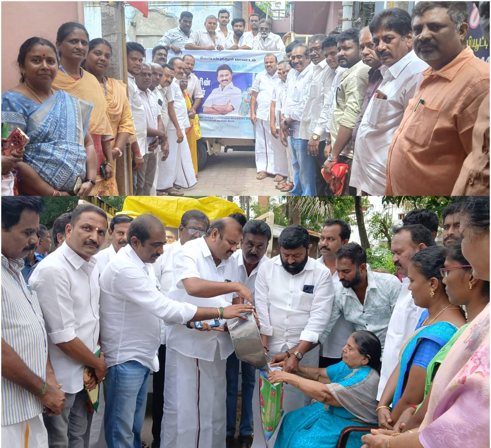 மகாத்மா காந்தி மண்டபம் வீதியில் பொள்ளாச்சி நகர தெற்கு பொறுப்பாளர் அமுதபாரதி தலைமையிலும், எல்.ஐ.ஜி. காலனியில் நகர வடக்கு பொறுப்பாளர் நவநீதகிருஷ்ணன் ஆகியோர் தலைமையிலும் பொள்ளாச்சி பாராளுமன்ற உறுப்பினர் ஈஸ்வரசாமி, வீடுகளுக்கே நேரில் சென்று பயனாளிகளுக்கு ரேஷன் பொருட்களை வழங்கி இத்திட்டத்தை துவக்கி வைத்தார்.