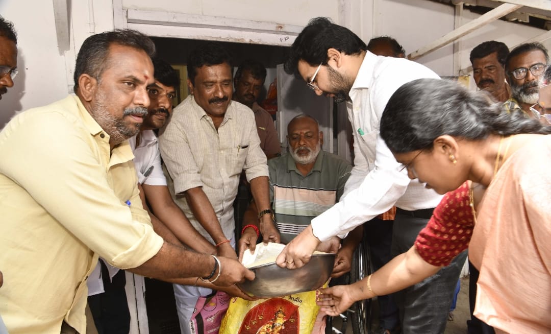 ரேஷன் பொருட் களை மாவட்ட கலெக்டர் ரஞ்ஜீத் சிங் பெரிய குளம் சட்டமன்ற உறுப்பினர் கே எஸ் சரவணக்குமார் முன்னிலையில் வழங்கினார்கள்.