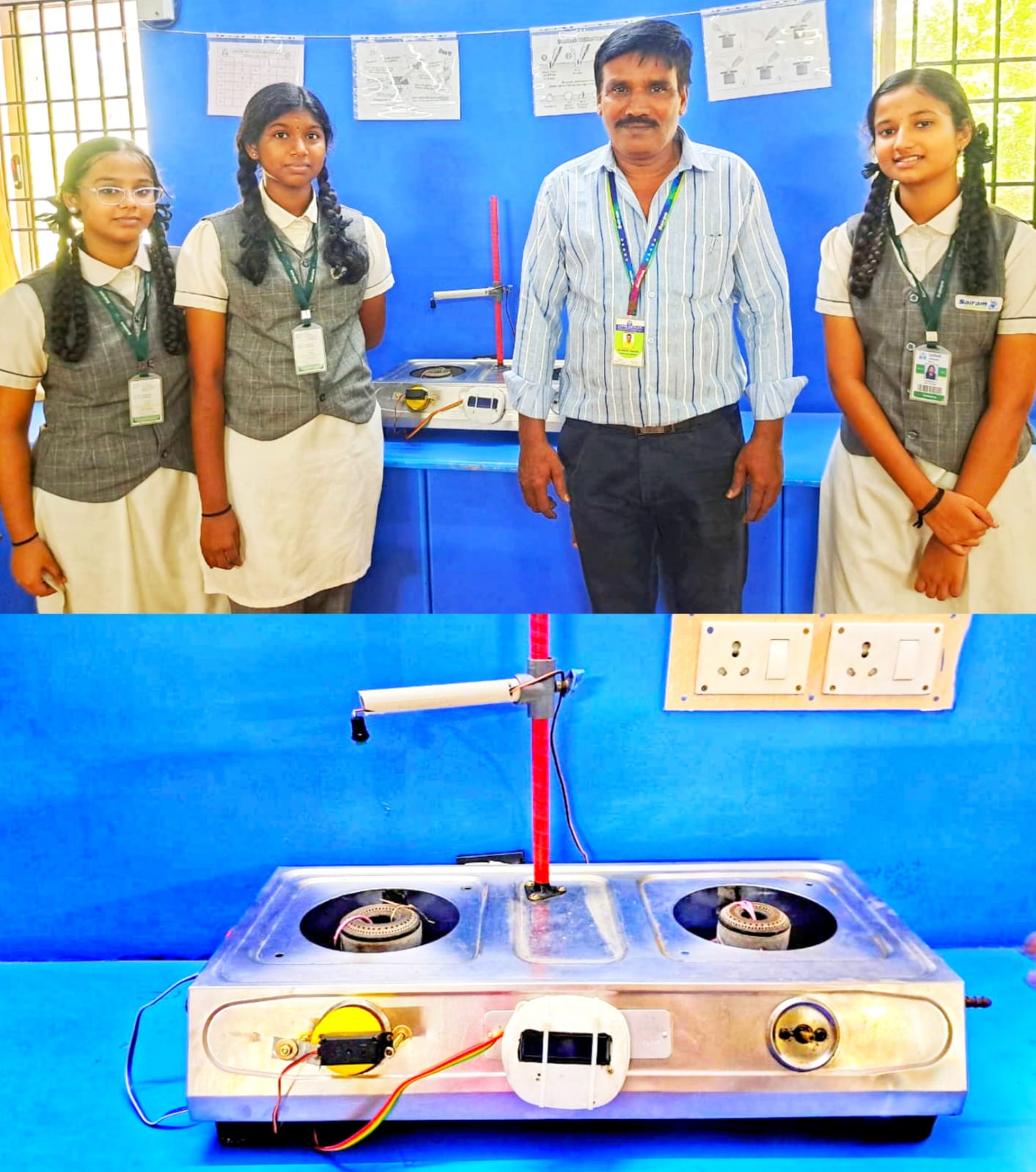 கேஸ் ஸ்டவ்வில் குக்கர் மூலம் சாதம் மற்றும் அசைவம் சமைக்கும் போது 3 அல்லது அதற்கு மேல் விசில் செட் செய்து வைத்து விடவேண்டும். அப்படி செய்யும் போது, நீங்கள் செட் செய்த கருவி மூலம் 3 விசில் வந்த உடன் அடுப்பு தானாக அணைந்து விடும். இப்படி ஒரு கருவியை கோரிப்பாளையம் சாய்ராம் வித்யாலயா பள்ளி மாணவிகள் தியாஸ்ரீ, தனிஷா மற்றும் ஸ்வானிகா ஆகியோர் கண்டு பிடித்துள்ளனர். பள்ளி முதல்வர் லெட்சுமி , அனைத்து அறிவியல் ஆசிரியர்கள் மற்றும் வழிகாட்டி ஆசிரியர் அப்துல் ரஷாக் ஆகியோர் மாணவியரை பாராட்டினர்.
