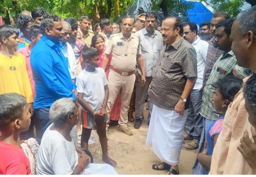 கடலூர் மாவட்டத்தில் வீட்டின் சுவர் இடிந்து உயிரிழந்தவர்களின் குடும்பத்தினருக்கு ஆறுதல், அமைச்சர்பன்னீர்செல்வம், ஆறுதல் கூறினார்.