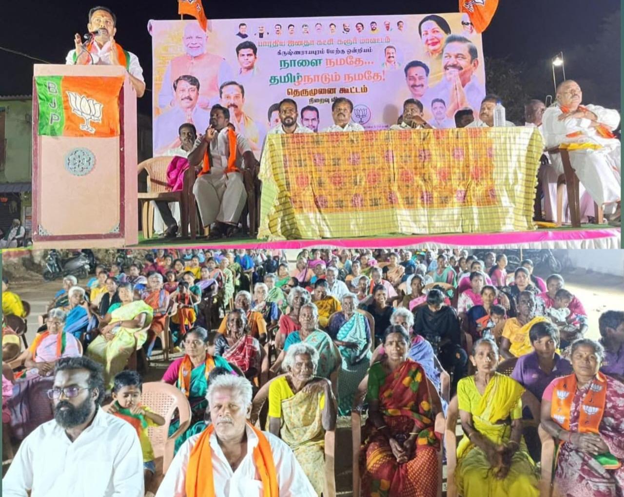 பாஜக-வின் தெரு முனை பிரச்சாரம் பாரத பிரதமர் நரேந்திர மோடியின் தலைமையிலான தேசிய ஜனநாயகக் கூட்டணியின் ஆட்சி தமிழகத்தில் மலர