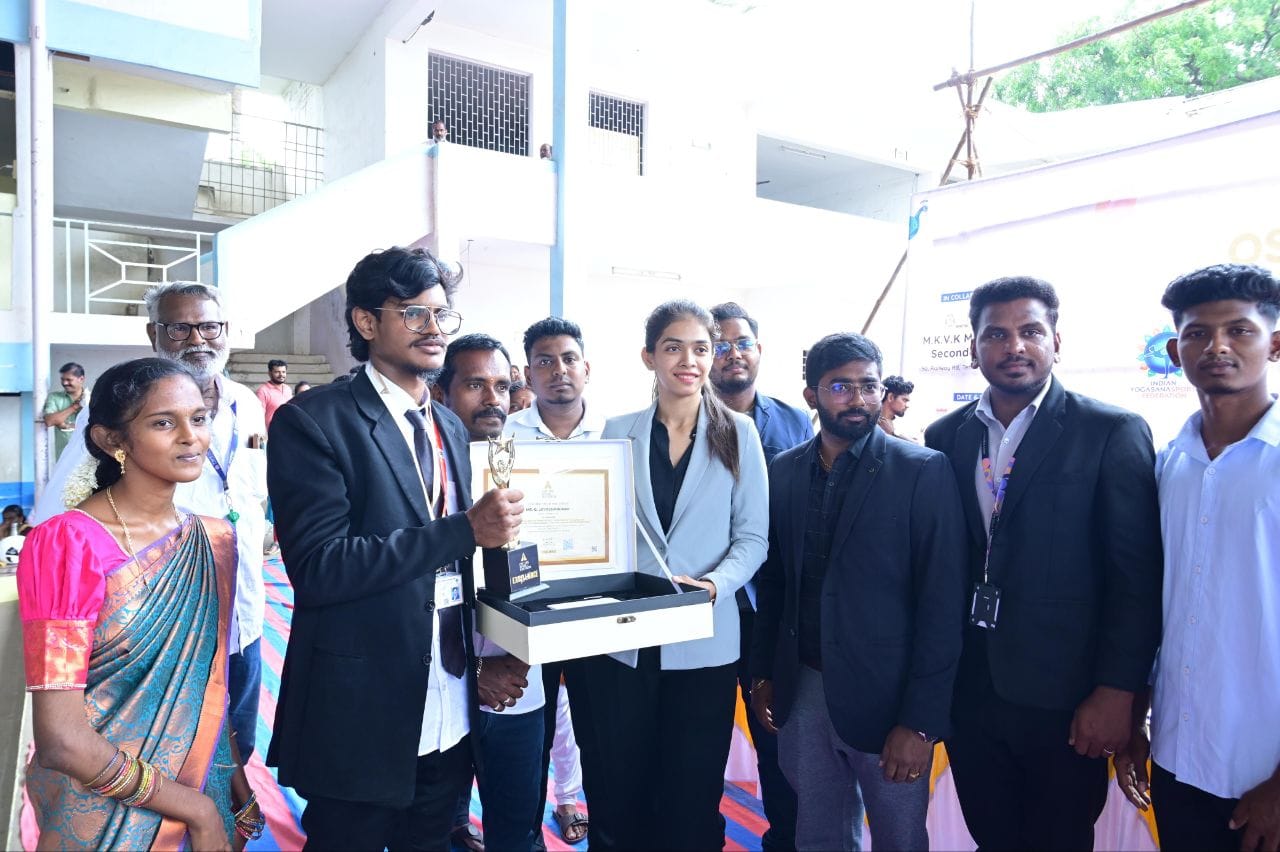 இந்திய யோகாசன விளையாட்டுச் சம்மேளனம் இந்திய அரசின் மினிஸ்ட்ரி ஆஃப் ஆயுஷ் – யோகா சர்டிபிகேஷன் போர்டு அங்கீகாரம் பெற்ற தேசிய அமைப்பின் தலைமையில், எம்.கே.வி.கே. மேட்ரிக் உயர்நிலைப் பள்ளி, தென்காசி வளாகத்தில் நடைபெற்ற இந்த நிகழ்ச்சியில், 500-க்கும் மேற்பட்டோர் ஒரே நேரத்தில் 79 முறை சூர்ய நமஸ்காரம் செய்து சாதனை படைத்தனர்.