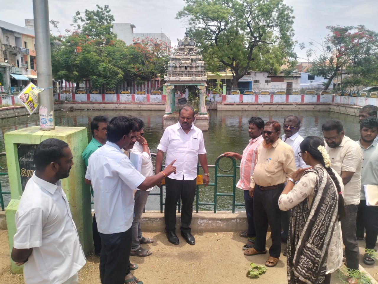 மேயர் ஜெகன் இதனை அடுத்து திங்கட்கிழமை காலை மாநகராட்சி மேயர் அதிகாரிகளுடன் தெப்பக்குளத்துக்கு நேரில் வருகை தந்தார் அங்கு அதிகாரிகளிடம் எந்த வகையில் எப்படி சீரமைக்கப்படுகிறது என்ற விபரங்களை கேட்டு அறிந்தார் அப்போது எக்காரணத்தைக் கொண்டும் மழை நீர் கழிவு நீர் தெப்பக்குளத்துக்குள் வரக்கூடாது என்று அதிகாரிகளுக்கு கண்டிப்பாக உத்தரவிட்டார்