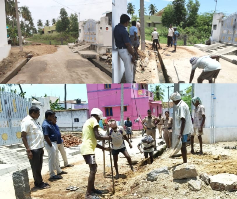 இதைத் தொடர்ந்து 21/08/ 2025 அன்று வட்டார வளர்ச்சி அலுவலர்கள் செந்தில்குமார், பழனிசாமி மற்றும் ஊராட்சி மன்ற செயலாளர் ஆகியோர் போலீசார் பாதுகாப்புடன் சாலை ஆக்கிரமிப்பு செய்துள்ள மண்ணையும் கழிவுநீர் கால்வாயில் கொட்டியிருந்த மண்ணையும் அப்புறப்படுத்தி னர்.