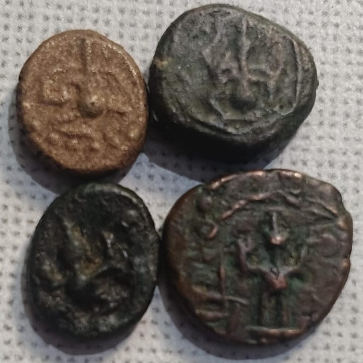 அதில் செம்பு உலோகத்தில் 2.4 கிராம் எடையில் காசின் முன்பக்கத்தில் கணபதி அமர்ந்த நிலையில் உள்ளார்.பின் பக்கத்தில் பழனி என்று இரண்டு வரிகளில் தமிழில் பெயர் உள்ளது. மற்றொரு காசின் முன் பக்கத்தில் திருவாசிக்குள் கணபதி அமர்ந்த நிலையில் சுற்றிலும் பழனி என்று தமிழ் எழுத்துக்களில் பொறிக்கப்பட்டுள்ளது. பின்பக்கத்தில் திரிசூலம் உள்ளது. செம்பு உலோகத்திலான நாணயம் 2.2 கிராம் எடையுள்ளது என்றார்