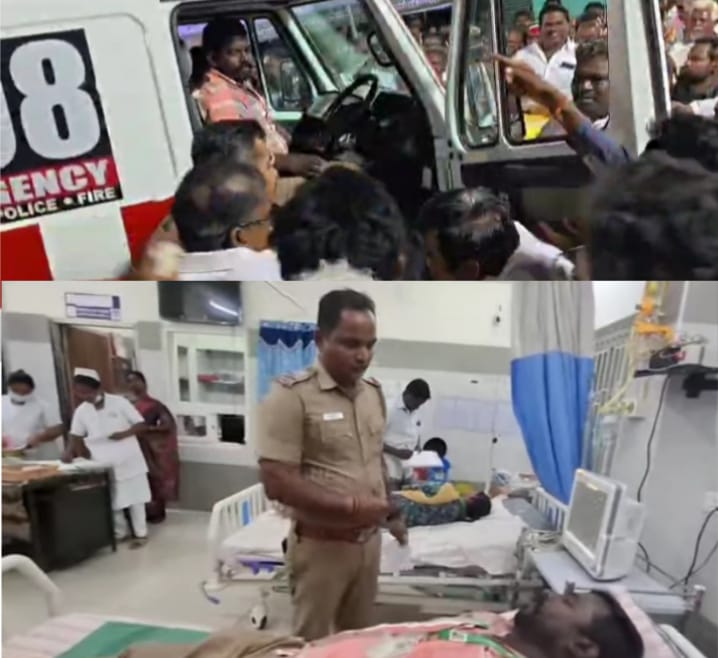இதனைத் தொடர்ந்து இன்ஸ்பெக்டர் முத்தையன் ஓட்டுநரிடம் விசாரித்ததில் கூட்டத்தில் இருந்த ஒரு நபர் மயக்கம் அடைந்து விட்டதாக 108க்கு போன் வந்தது,