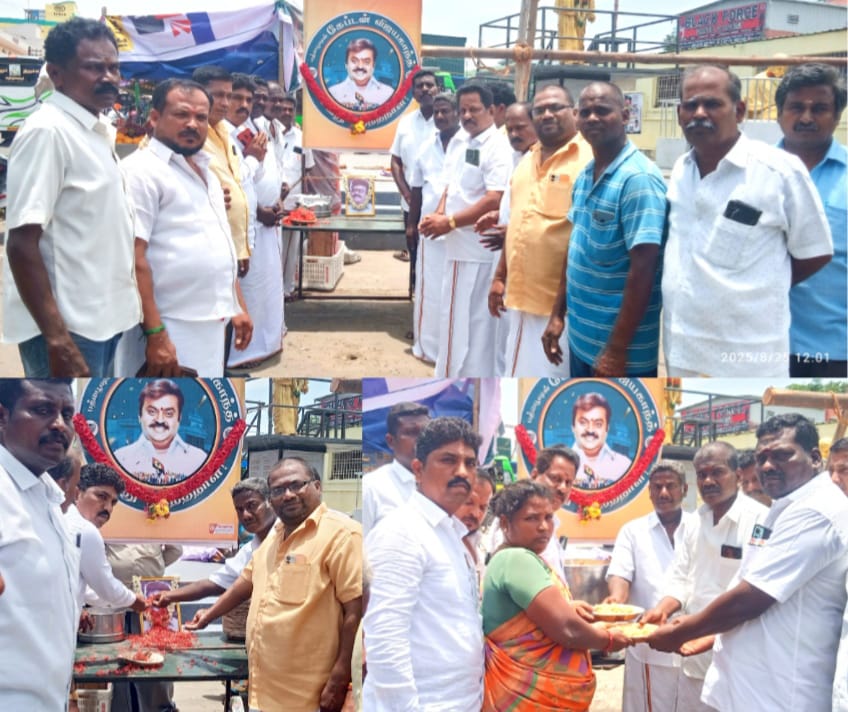 திருச்சி மாவட்டம் துறையூர் பேருந்து நிலையம் முன்புறம் துறையூர் நகர தேமுதிக சார்பில் நகர செயலாளர் சங்கர் தலைமையில் தேசிய முற்போக்கு திராவிட கழக நிறுவனரும், நடிகருமான கேப்டன் விஜயகாந்தின் 73 வது பிறந்தநாள் விழா (25/08/2025) இனிப்பு வழங்கி சிறப்பாக கொண்டாடப்பட்டது.