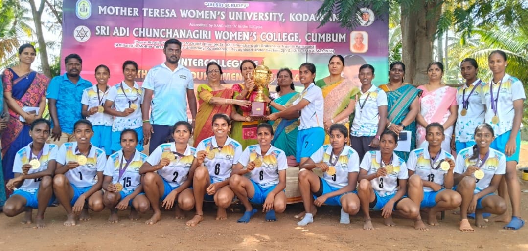 கம்பம் ஸ்ரீ ஆதி சுஞ்சனகிரி மகளிர் கல்லூரி பல்கலை கோகோ போட்டியில் சாம்பியன் அன்னை தெரசா மகளிர் பல்கலை அளவிலான கோகோ போட்டிகளில் பங்கேற்ற ஸ்ரீ ஸ்ரீ ஆதி சுஞ்சனகிரி மகளிர் கல்லூரி மாணவிகள் சாம்பியன் பட்டம் பெற்றனர்