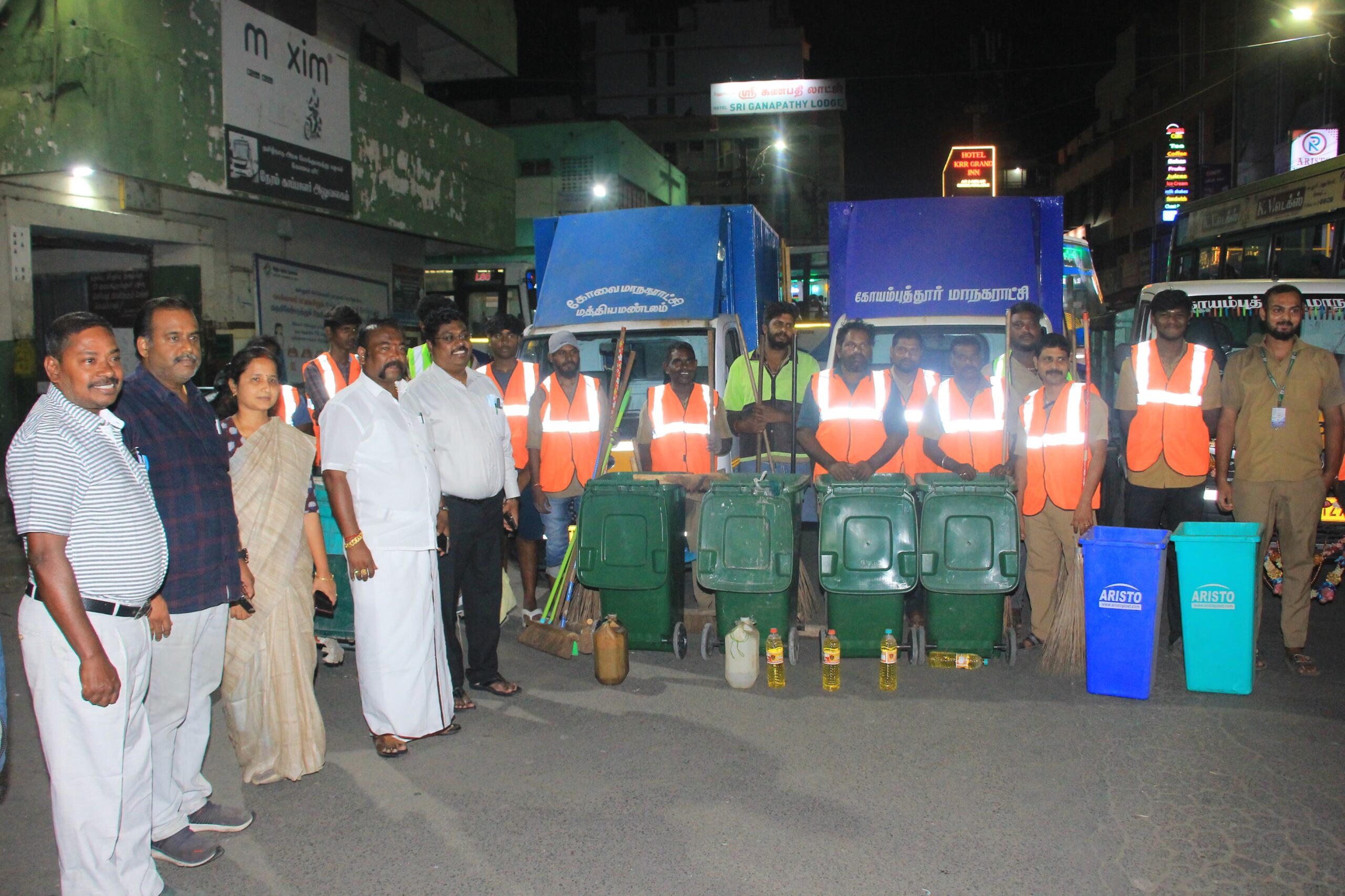 கோவை மாநகராட்சிக்கு உட்பட்ட பகுதிகளில் சுகாதாரத்தை பேணும் வகையில், தூய்மை பணிகள் சிறப்பாக செயல்பட்டு வருகின்றது. இந்நிலையில், கோவை காந்திபுரம் வெளியூர் பேருந்து நிலையம் மற்றும் டவுன் பேருந்து நிலையத்தில் தினமும் பல லட்சக்கணக்கான பயணிகள் பயன்படுத்தி வரும் நிலையில், நேற்று இரவு (26-8-25) கோவை மாநகராட்சி சுகாதாரக்குழு தலைவர் மாரிச்செல்வன் தலைமையில், காந்திபுரம் பேருந்து நிலையத்தில் “மாஸ் கிளீனிக்” பணியில் 50 க்கும் மேற்பட்ட தூய்மை பணியாளர்கள் ஈடுபட்டனர். பேருந்து நிலையம் பகுதி முழுவதும் தண்ணீரில் பீச்சி அடிக்கப்பட்டும் கிருமி நாசினி தெளிக்கப்பட்டும் தூய்மைப்படுத்தப்பட்டது.