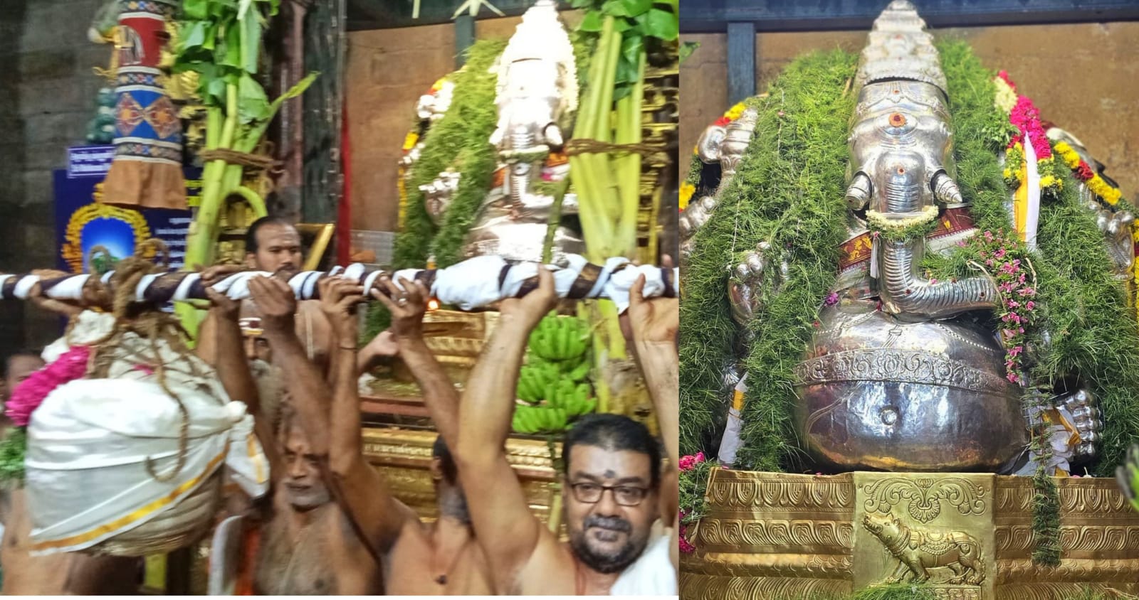 மேலும் சிறப்பு பூஜைகள் நடத்தப்பட்டு அருகம்புல் மாலை மற்றும் பல்வேறு மலர்களால் ஆன மாலைகள் சாத்தப்பட்டு விநாயகருக்கு வெள்ளிக்க வசம் அணிவித்து தீபாராதனை நடைபெற்றது.