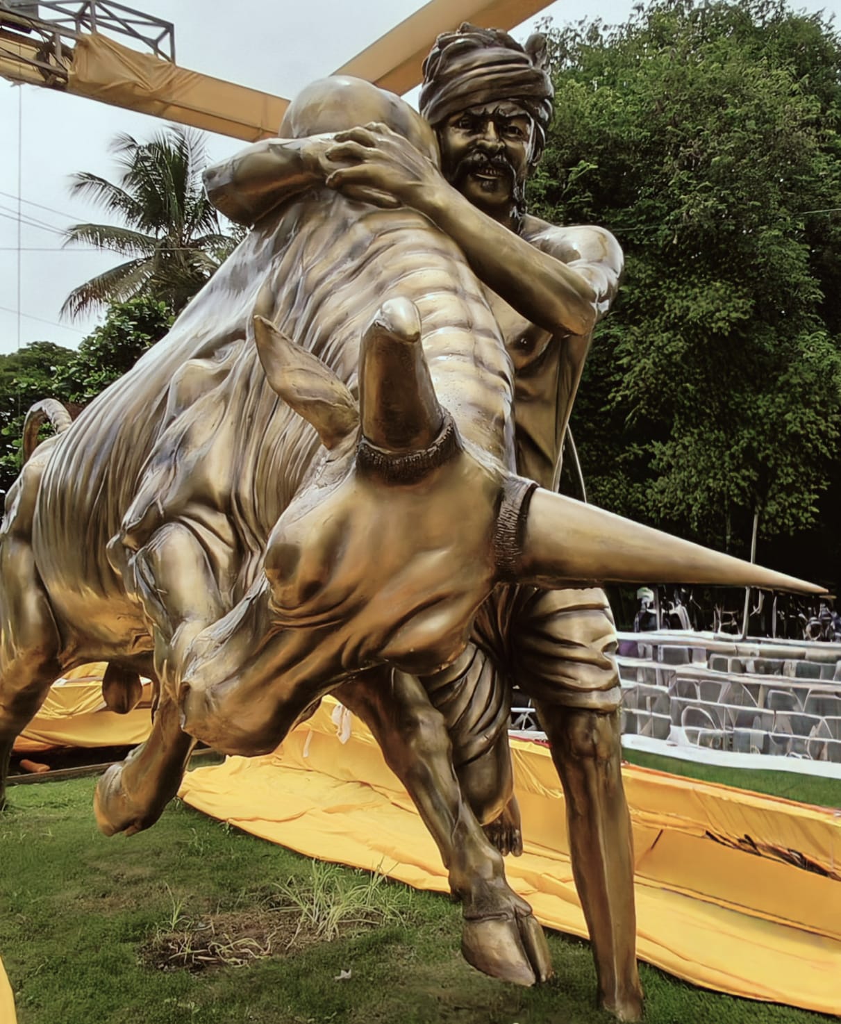 கோவை மாநகரின் முக்கியமான இடங்களில் ஒன்றான காளப்பட்டி ரவுண்டானா பகுதியில் அடிசியா நிறுவனம் சார்பில் ஜல்லிக்கட்டு காளையை வீரர் அடக்குவது போன்ற பிரமாண்ட சிலை நிறுவப்பட்டுள்ளது. இதனை கோவை மாவட்ட ஆட்சியர் பவன்குமார் மாநகராட்சி ஆணையாளர் சிவகுரு பிரபாகரன் ஆகியோர் திறந்து வைத்தனர்.