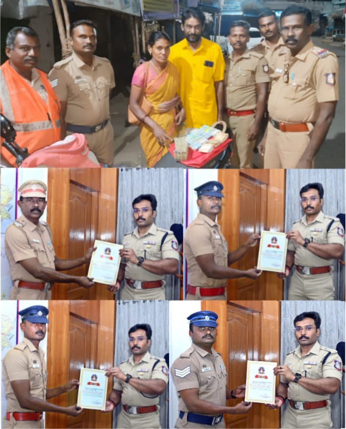 அரசு பேருந்தில் தம்பதியினர் தவற விட்ட 8பவுன் நகை ரூ3 லட்சம் பண பேக்கை மீட்டு ஒப்படைத்த போலீசாருக்கு பொதுமக்கள் பாராட்டு