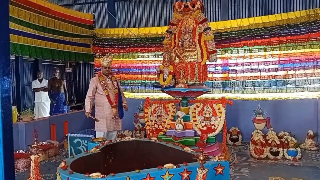 சீர்காழி அருகே குமிளங்காடு ஆதி நாகத்தம்மன் கோவிலில் 18 அடி உயரம் கொண்ட பிரம்மாண்ட அதர்வன பத்ரகாளியம்மன் கோவில் கும்பாபிஷேகம்.